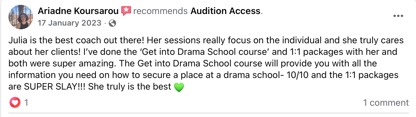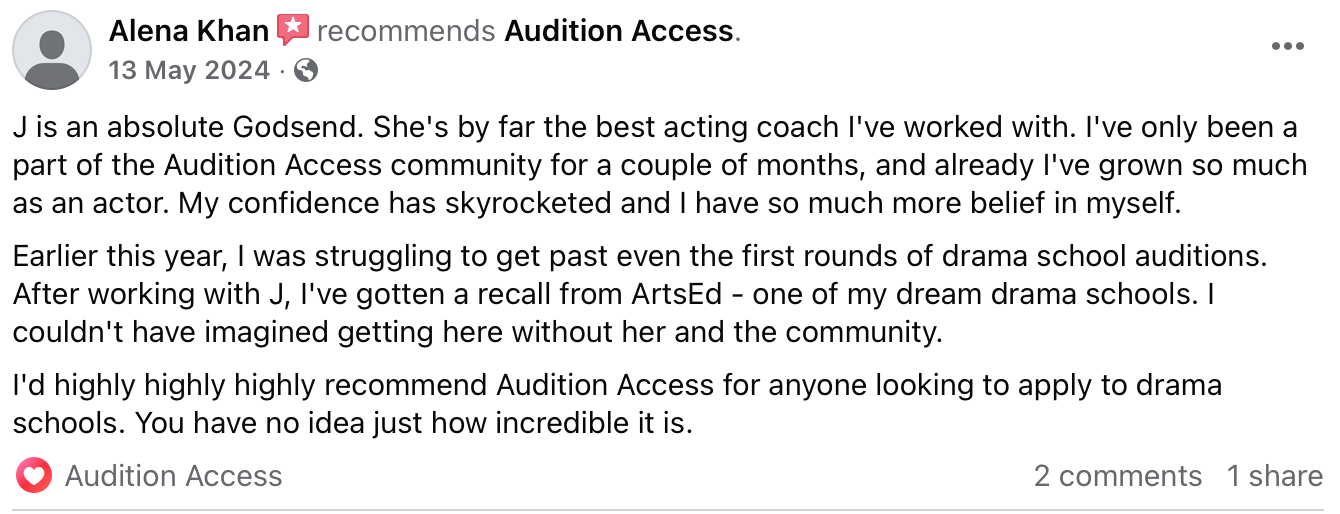 Best for: actors want to DIVE DEEP and look at their speeches, mindset and audition strategy individually๐